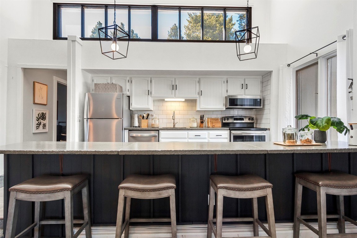 Spacious top floor 2 BR, 1 BA unit boasts vaulted ceilings, extra windows, open floor plan AND faces southeast for optimal sun, views and quiet. New stainless appliances, concrete countertops, designer wood interior, sound-reducing flooring, washer/dryer and recently completed bathroom remodel! THIS ONE SHINES! Fantastic location with a short walk to Peak 8, Nordic Center, hiking/biking trails & the bus stop. HOA dues include heat, water, trash/recycling, cable & high-speed internet. On site hot tub, ski storage and owners’ storage. Deed restricted. Owner or tenant must work 30 hours in Summit Co. NO APPRECIATION CAP. Investors welcome!